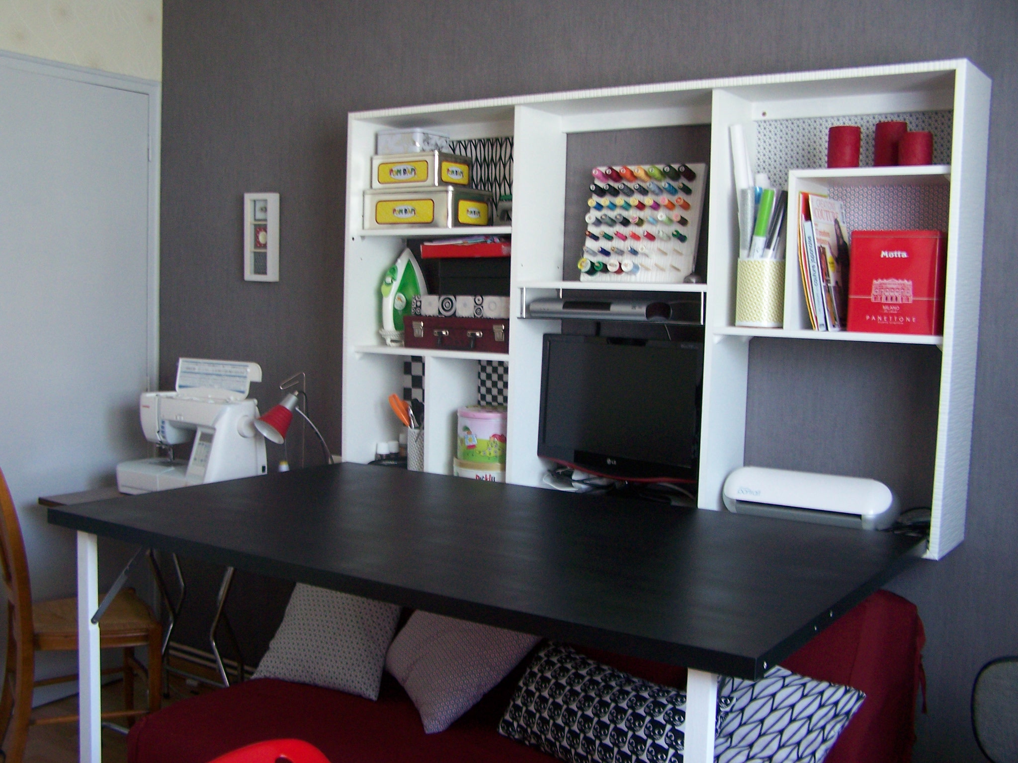 Souvenez vous il y a tout juste 1 mois, je vous parlais de la pièce qui me sert d’atelier de couture. Dans cette pièce multifonction il me manquait une table suffisamment grande pour faire la couture…